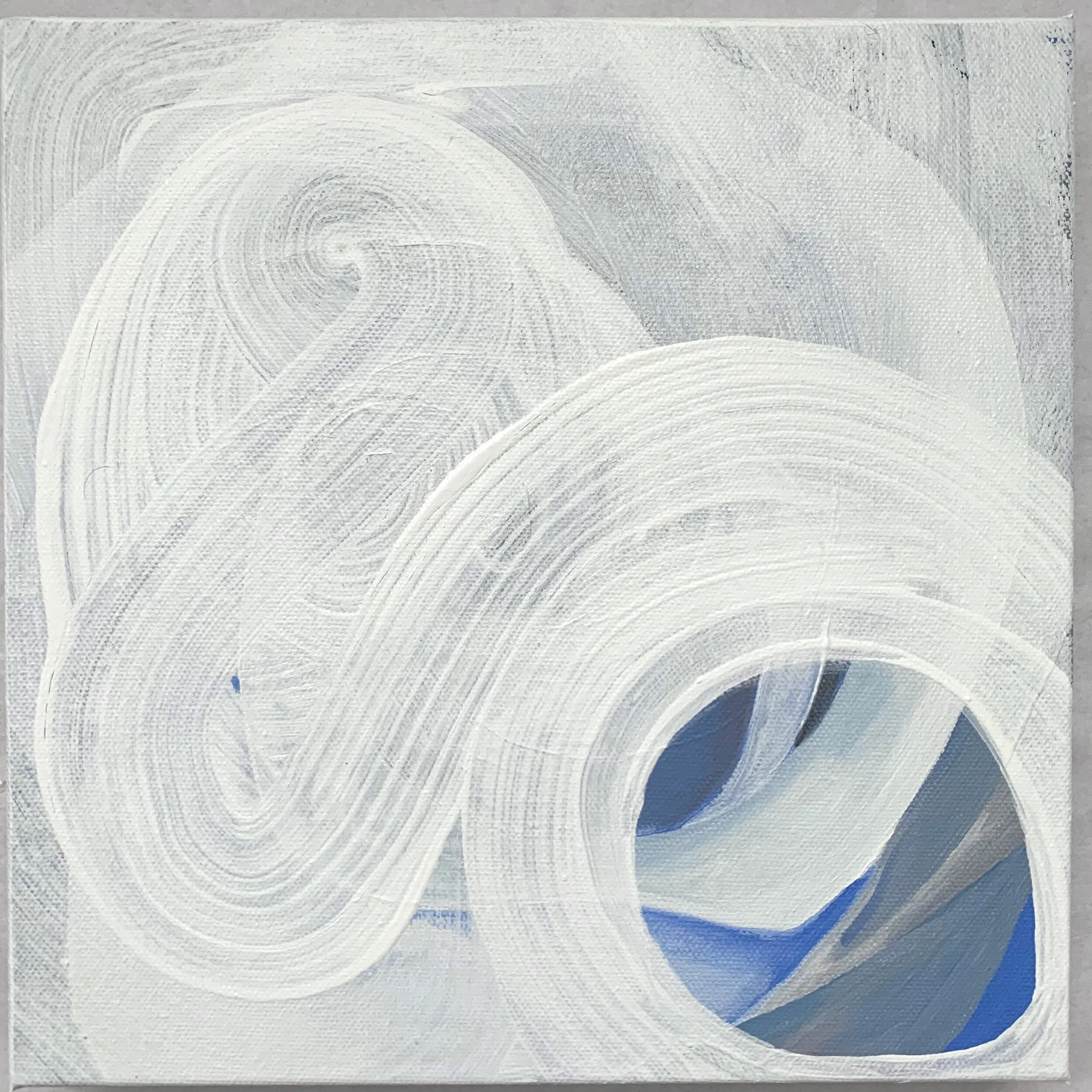 Acrylic on cradled wooden board. Black with a peep hole of light blue, green, purple, white.
